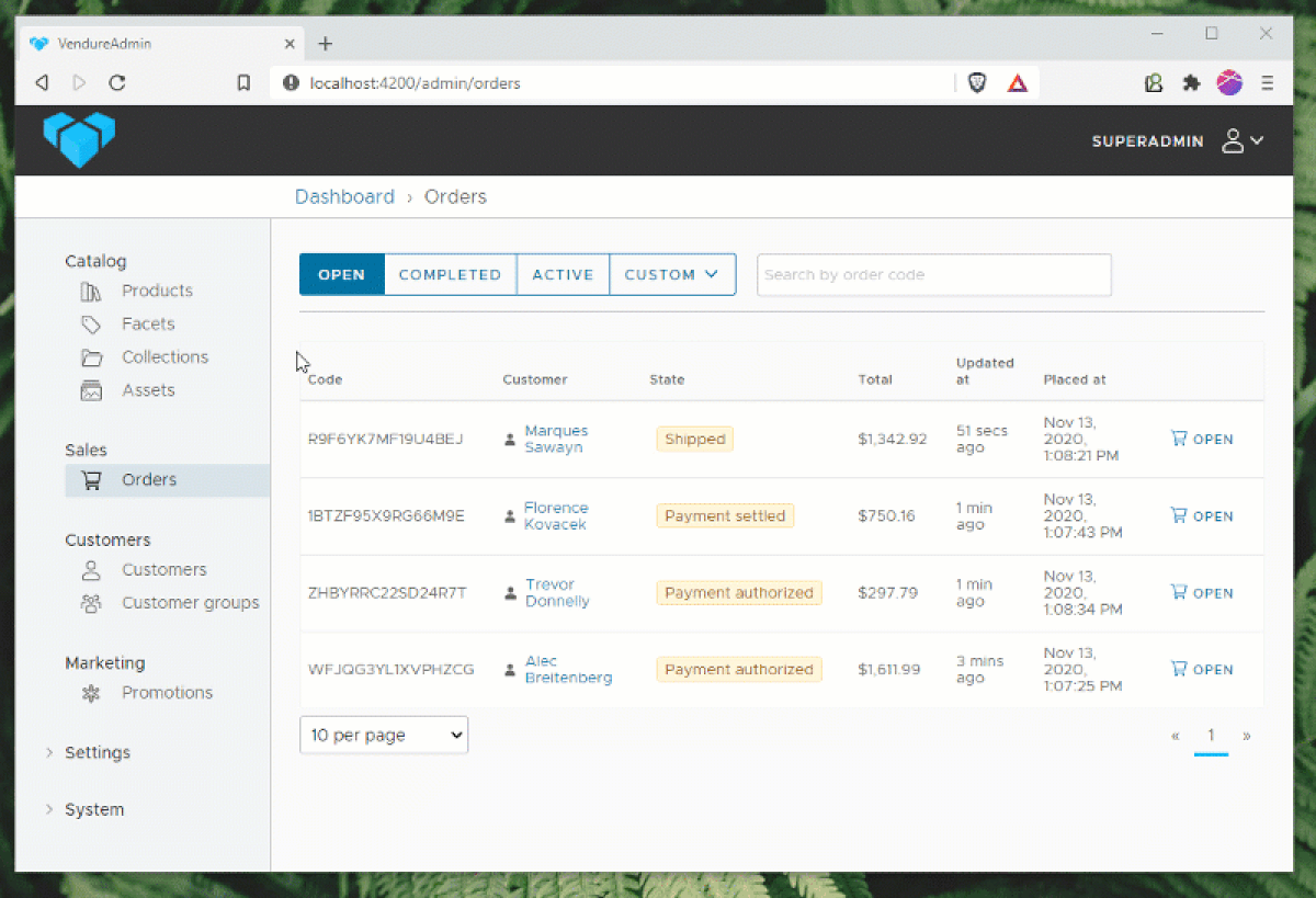 These new filters enabled a much improved list view for orders in the Admin UI:
