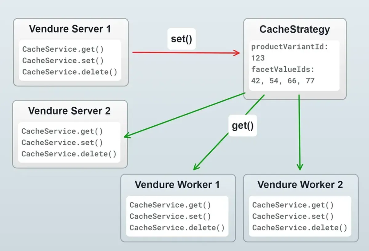 Vendure is commonly deployed in a multi-instance configuration. This means there are multiple servers running at the same time. If we cache data on one instance, it won't be available to the others. If we update a product variant on one instance, we have to way to invalidate any cache on other instances.