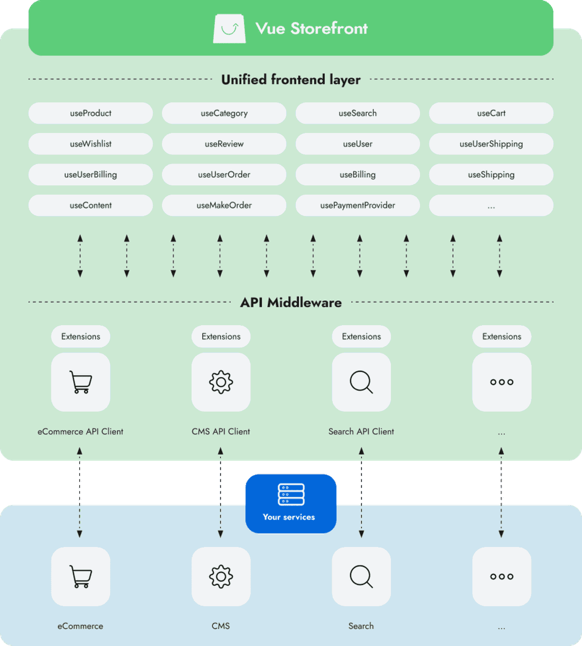 Vue Storefront is Lightning-Fast Frontend Platform for Headless Commerce. Boost your site performance, shape the customer journey and free your developer's creativity with Vue Storefront, the last frontend you will ever need.