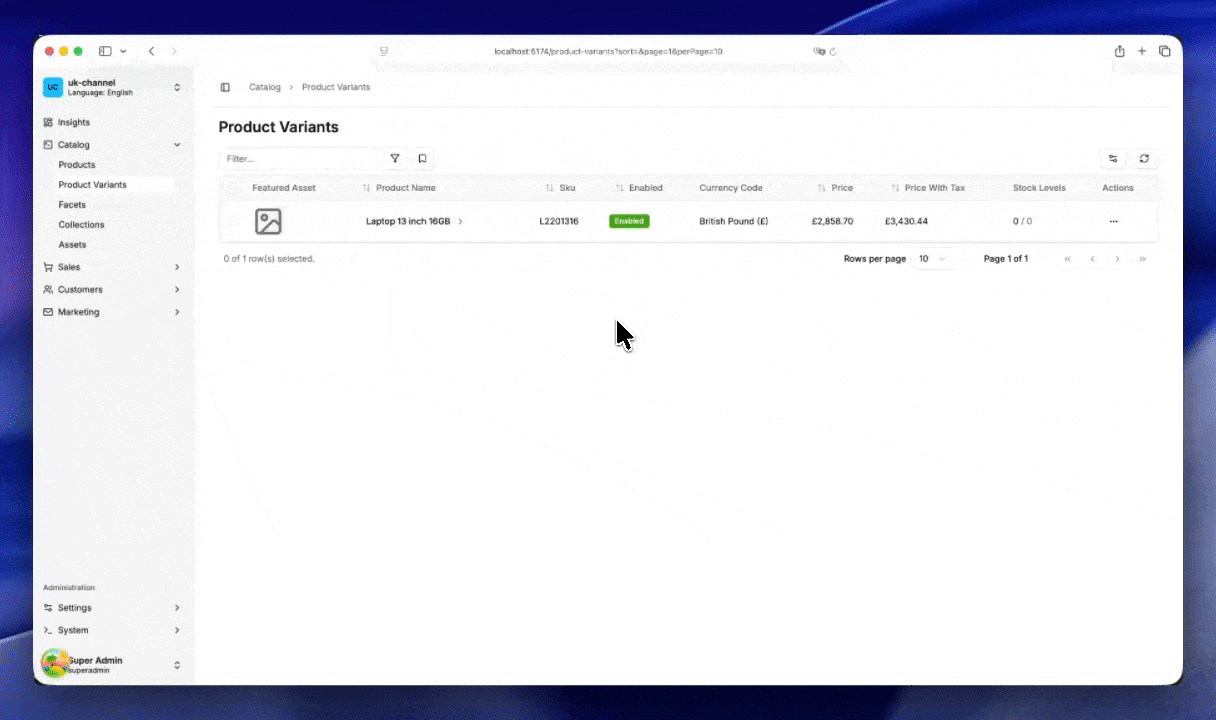 2. Assign a Product Variant to the New Channel Once your Channel is created, you can start assigning products to it.
