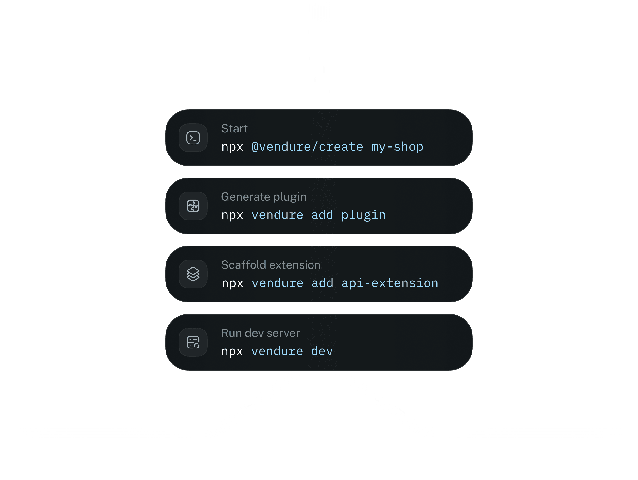 The Vendure CLI is the entry point for fast, repeatable development workflows—from plugin creation to dashboard extension generation. Used daily by Vendure developers and agency teams, the CLI helps scaffold new functionality with zero friction. It’s optimized for speed, consistency, and confidence in your build process.