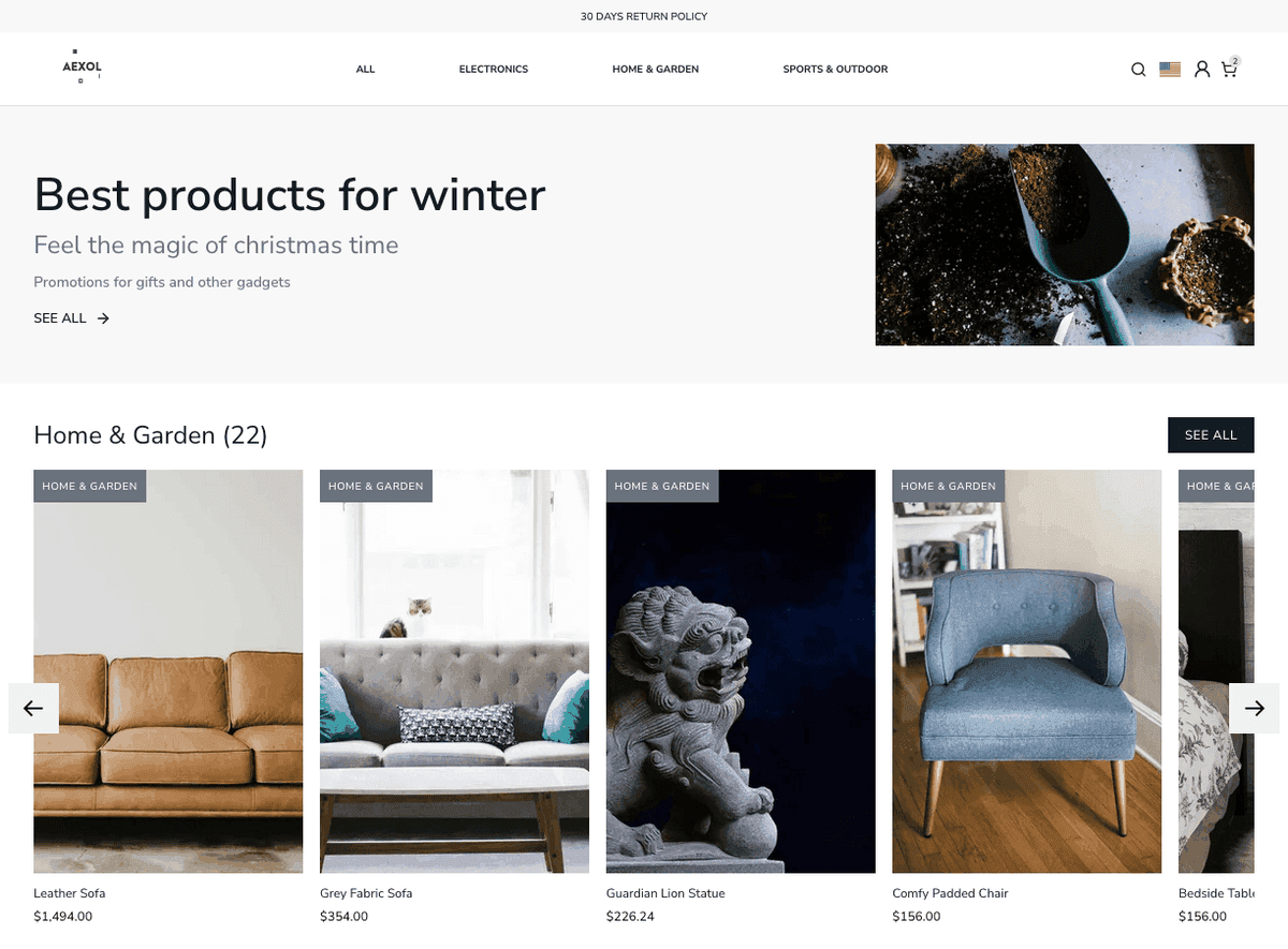 Aexol's Storefront Starter: The community-driven Next.js storefront by Aexol offers a comprehensive starting point with built-in features like multi-language support, advanced product filtering, and a clean, customizable design system. It's particularly well-suited for developers who want more control over their implementation details.