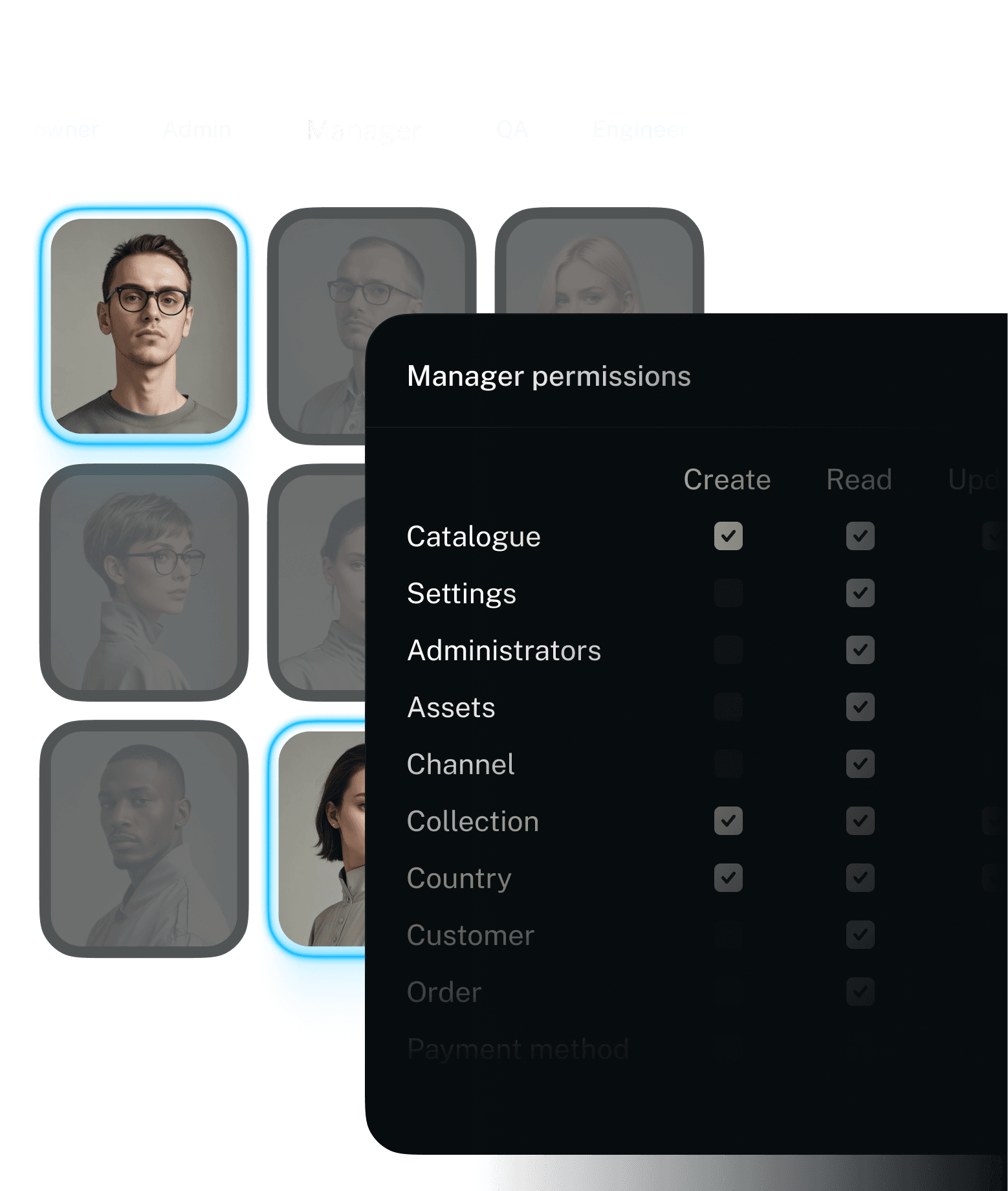 Our advanced permission system allows you to finely control user access by customizing permissions for specific features and adding your own for unique business needs. This flexibility is available across both API and Admin Dashboard.